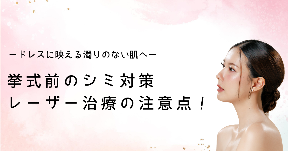 今回は「挙式前の『シミ対策』とレーザー治療の注意点!ドレスに映える濁りのない肌へ」という内容でご紹介してきました!